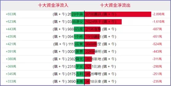 好仓(认购证及牛证)方面,周二中寿、港交所、百度、中移动等相关好仓获部分资金净流入部署;腾讯、快手相关好仓分别见约2890万、1610万港元资金净流出。