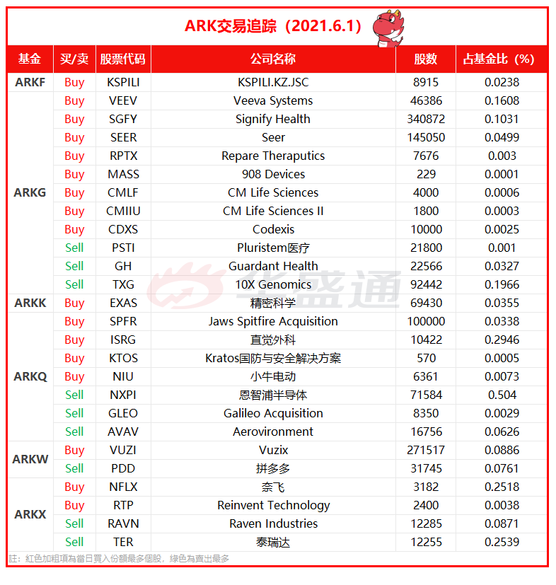 ARK 6月1日共交易26笔,买入17笔,卖出9笔。