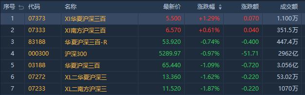 沪深300指数收跌0.97%。其中,华夏沪深三百-R(83188.HK)跌0.74%,成交额447.4万港元;华夏沪深三百ETF(03188.HK)跌1.09%,成交额约3.06亿港元。