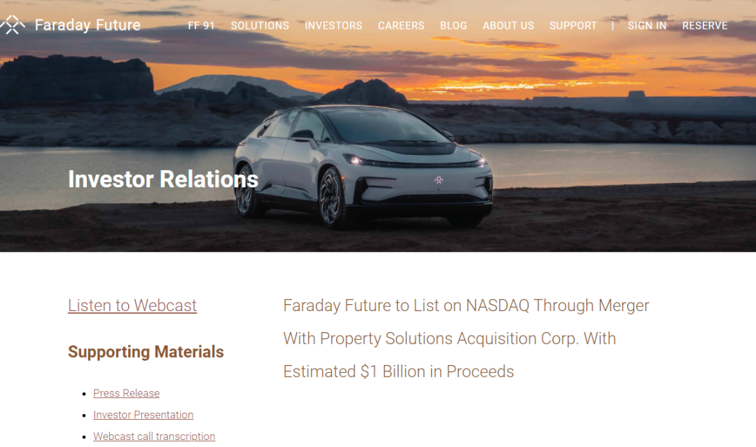 上市在即,法拉第未来与PSAC的动作自然迅速。