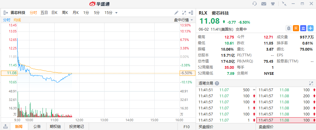 华盛资讯6月2日消息,美股早盘,部分热门中概股大部分走低。截至发稿, 荔枝(LIZI)跌超9%,贝壳(BEKE)跌超7%,雾芯科技(RLX)跌超6%;造车新势力板块,蔚来汽车(NIO)跌近2%,理想汽车(LI)涨超2%。