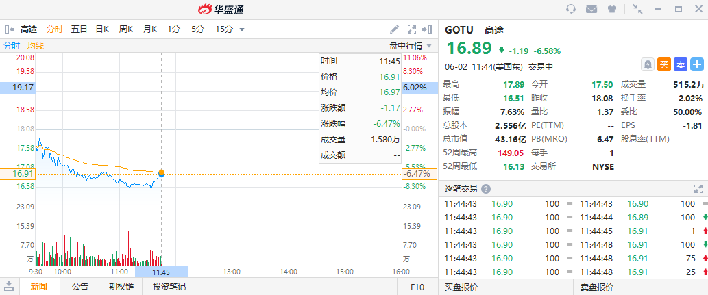 此外,美股在线教育板块持续走低,高途(GOTU)现跌超6%,好未来教育集团(TAL)跌近6%,新东方(EDU)跌超4%。