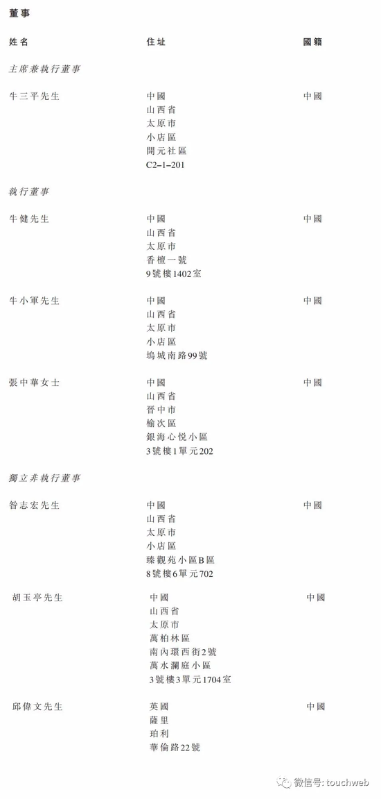 通才教育主席兼执行董事牛三平;执行董事牛健、牛小军、张中华女士;独立非执行董事为昝志宏、胡玉亭、邱伟文。