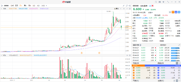 6月3日消息,山东墨龙H股低开低走,一度暴跌20%,现在跌超13%,市值52亿港元。涉嫌信披违法违规,公司及原董事长被立案调查。