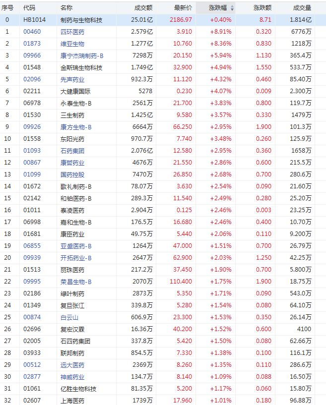 华盛资讯6月3日消息,生物制药板块高开低走后再度拉升上涨。截止发稿,四环医药、维亚生物涨8%;康宁杰瑞制药-B涨5%;金斯瑞生物科技涨超4%;康方生物-B、康哲药业涨超2%;亚盛医药-B涨超1%。