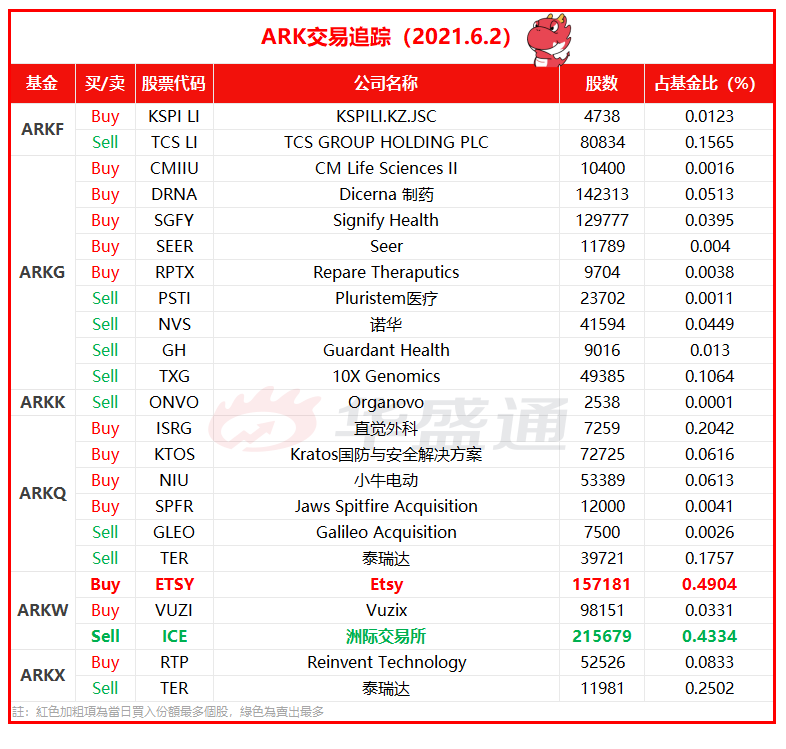 ARK6月2日共交易23笔,其中买入13笔,卖出10笔。