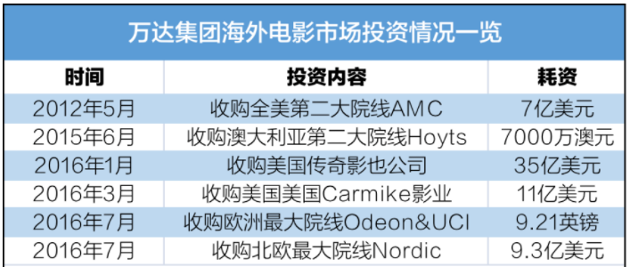 在那以后,万达集团对于海外电影市场的投资马不停蹄,还斥资数十亿美元投了澳洲、美国、欧洲等多家知名影业公司和院线。