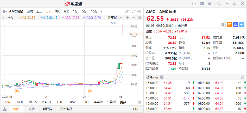 数读港美 | 一夜飙升95%,AMC院线市值打败标普500一半成分股