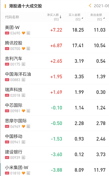 个股方面,今日南下资金净买入美团7.22亿港元,为今日买入之最。此外,南下资金净买入腾讯6.87亿港元,净买入吉利汽车2.65亿港元。