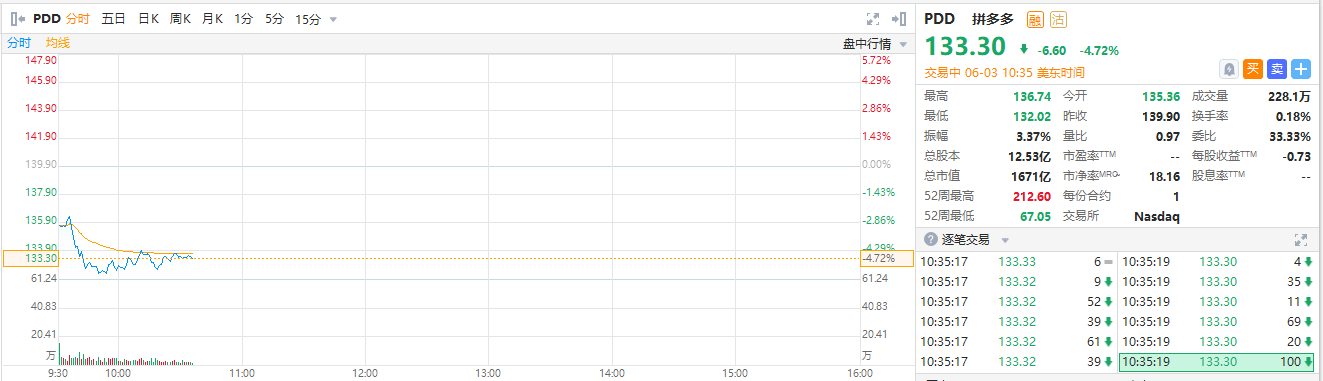 其他热门中概股中拼多多(PDD) 跌超4.7%,哔哩哔哩(BILI) 跌超3%,百度(BIDU)跌2.9%,京东(JD)跌1.5%。