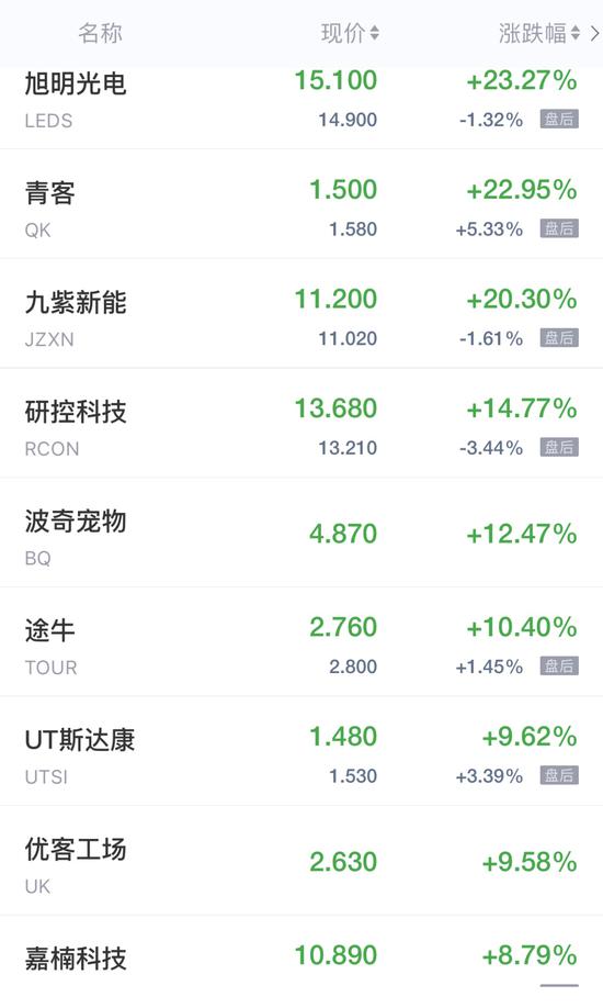 领涨中概股列表: