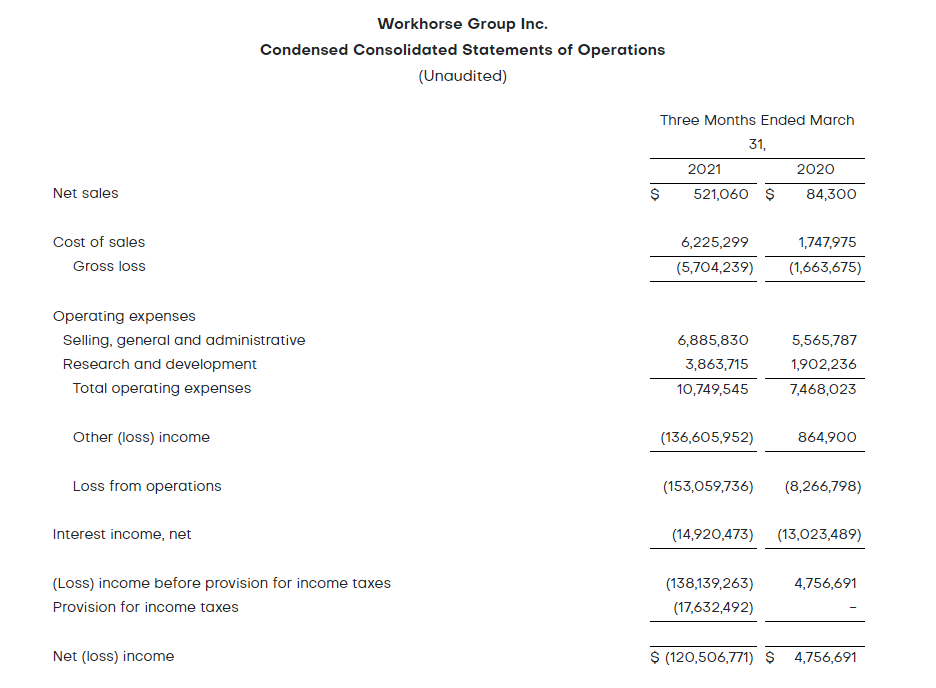 Workhorse此前发布的财报显示,第一季度仅交付6辆货车,销售额为52万美元,较市场预期少181万美元;EBITDA为-1.527亿美元,华尔街预测为-1670万美元。
