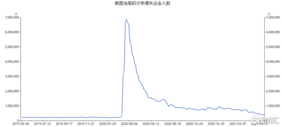 同时,上周美国首次申请失业救济的人数降至38.5万,低于一些经济学家预期的39.3万,也低于此前一周的前值40.6万人。