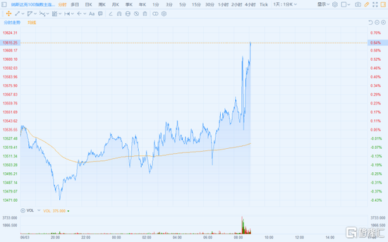 受此消息刺激,美股三大指数期货盘前迅速拉升,先前下探的纳斯达克100指数期货直线翻红,截止目前,道指涨0.25%,纳指涨0.6%,标普500指数涨0.42%。与此同时,美国十年期国债收益率短线下挫后回升,现报1.611%;美元指数直线跳水近40点,最低至90.12;现货黄金短线上扬8美元,报1877.4美元/盎司。