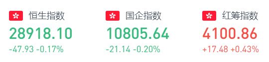 上周五收盘,恒指跌0.17%,报28918.1点,国企指数跌0.2%,红筹指数涨0.43%。