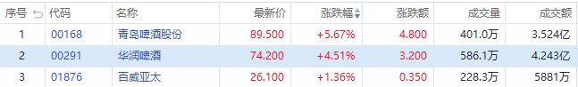华盛资讯6月7日消息,受消费旺季叠加体育赛事消息影响,A股啤酒概念异动拉升,港股啤酒股也异动走高。截止发稿,青岛啤酒上涨5.67%;华润啤酒上涨4.51%;百威亚太上涨1.36%。