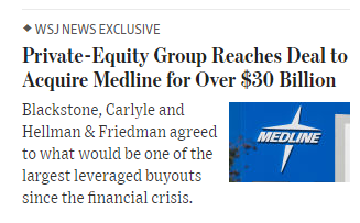 私募财团以340亿美元收购Medline,为金融危机以来最大的杠杆收购交易之一