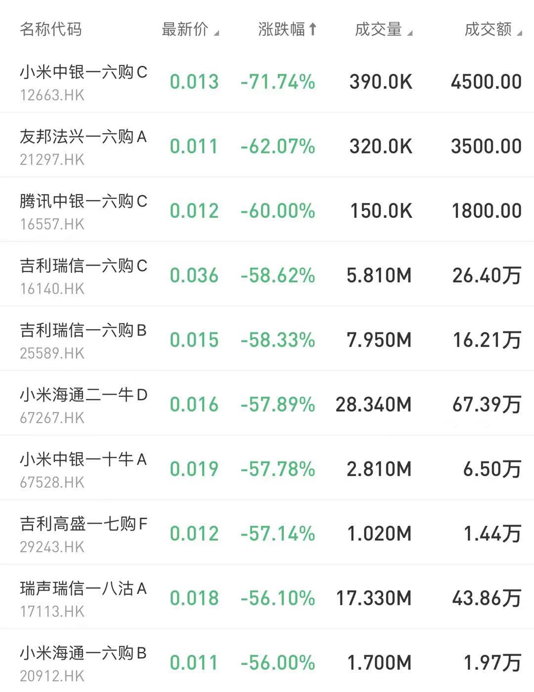 在今日跌幅榜中,小米中银一六购C跌71.74%;友邦法兴一六购A跌62.07%。