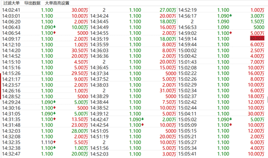根据公司成交数据,在1.1附近有巨量资金买入,动辄30万股、80万股。