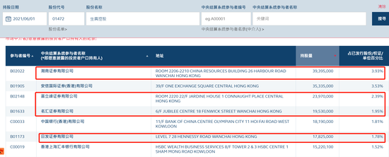 最新数据显示,潮商证券持仓3.58%,而晋立峰、日发、名汇证券持仓分别为1.31%,1.1%和0.55%,其中,名汇近5日减仓1313万股,晋立峰减仓1080万股,日发减仓673万股。