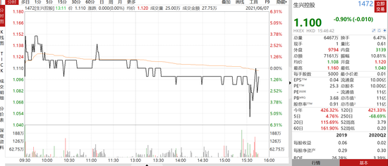 6月7日消息,又一只杀猪盘可能要暴跌了,生兴控股是一家香港本地土木工程的承建商,目前市值不足11亿港元,而且是在今年暴涨几倍的情况下。截至15点40分,生兴控股跌0.9%,放量成交6500万股,涉7161万港元。无论机构还是股民纷纷都在提示公司暴跌风险。
