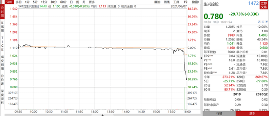 值得注意的是,随着写作,生兴控股已经开始暴跌,目前跌幅近30%,蒸发了3个亿,成交量放大到1.2亿股