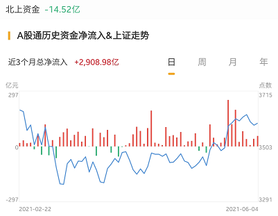 北上资金今日净流出14.52亿元,上周五为净流入超55亿元。