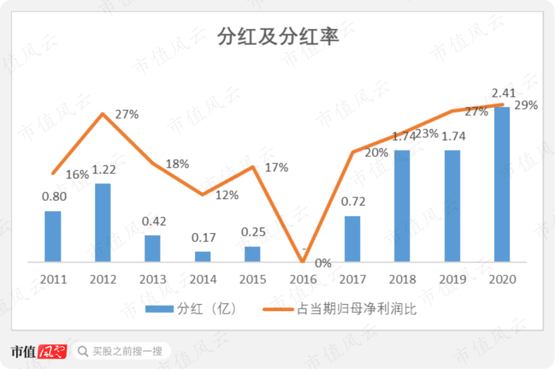 过去10年,公司分红金额累计达到9.5亿,占同期归母净利润的25%。