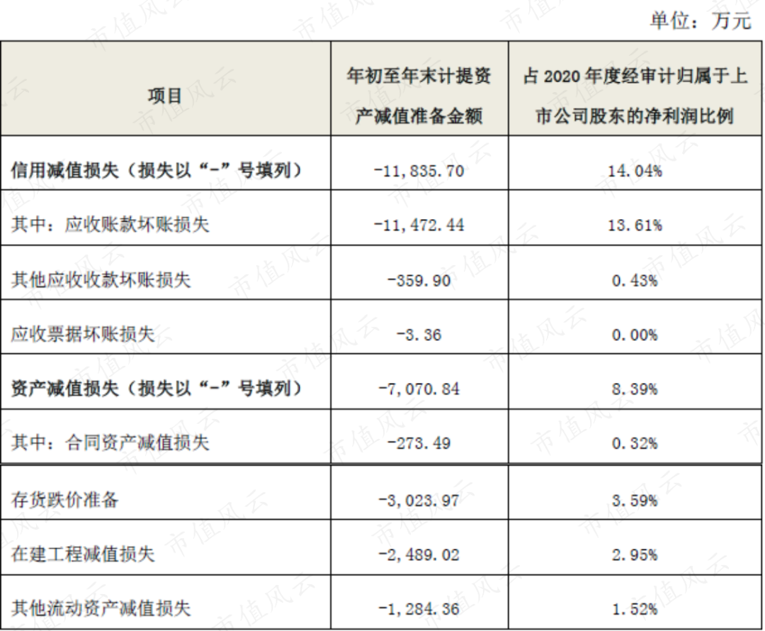 2020年,公司计提的减值准备较高,其中信用减值1.2亿,资产减值7000万。