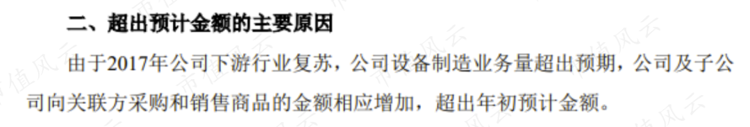 没想到2017年下半年需求爆发,导致当年的日常关联交易超出预计,采购项超了近6300万,而销售项超了近2000万。