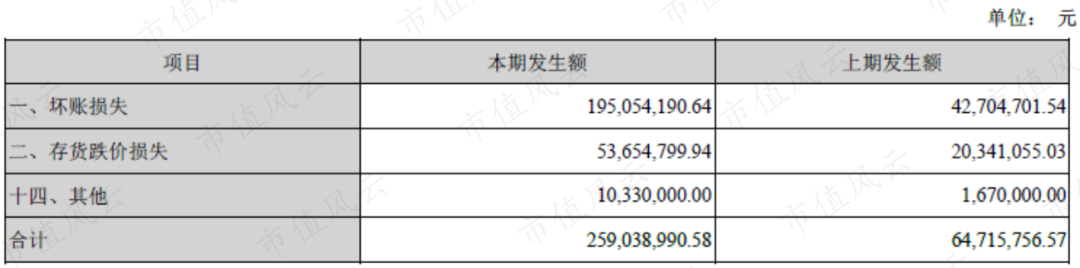 公司上一次较大规模的资产减值还在2016年,当时计提了2亿的坏账损失,5400万的存货跌价损失。