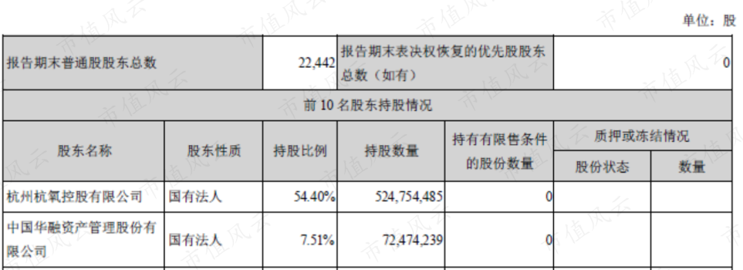 杭氧是一家不折不扣的国企,截止2021年一季度末,公司前两大股东都是国有法人,其中,杭州杭氧控股有限公司持股54.4%,处于绝对控股地位,第二大股东为华融资管。