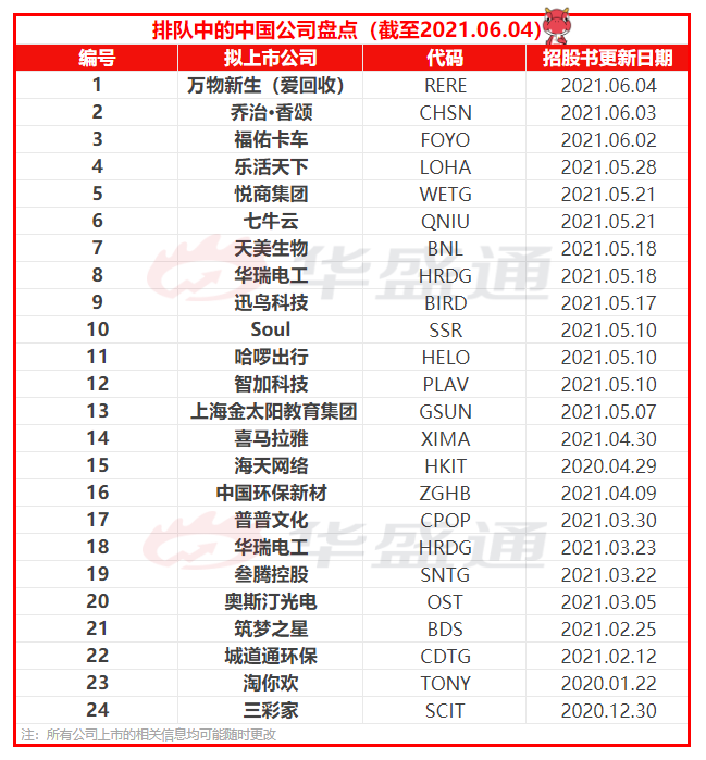 除了以上预计本周上市的8只新股外,上周暂无新增递表SEC的中国公司,但还有爱回收、乔治·香颂等公司更新了招股书,值得投资者关注。