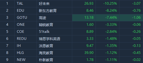 华盛资讯6月7日消息,美股盘初,中概教育股开盘后迅速走低,好未来(TAL)跌超10%,新东方教育(EDU)跌超8%,高途(GOTU)跌超7%。