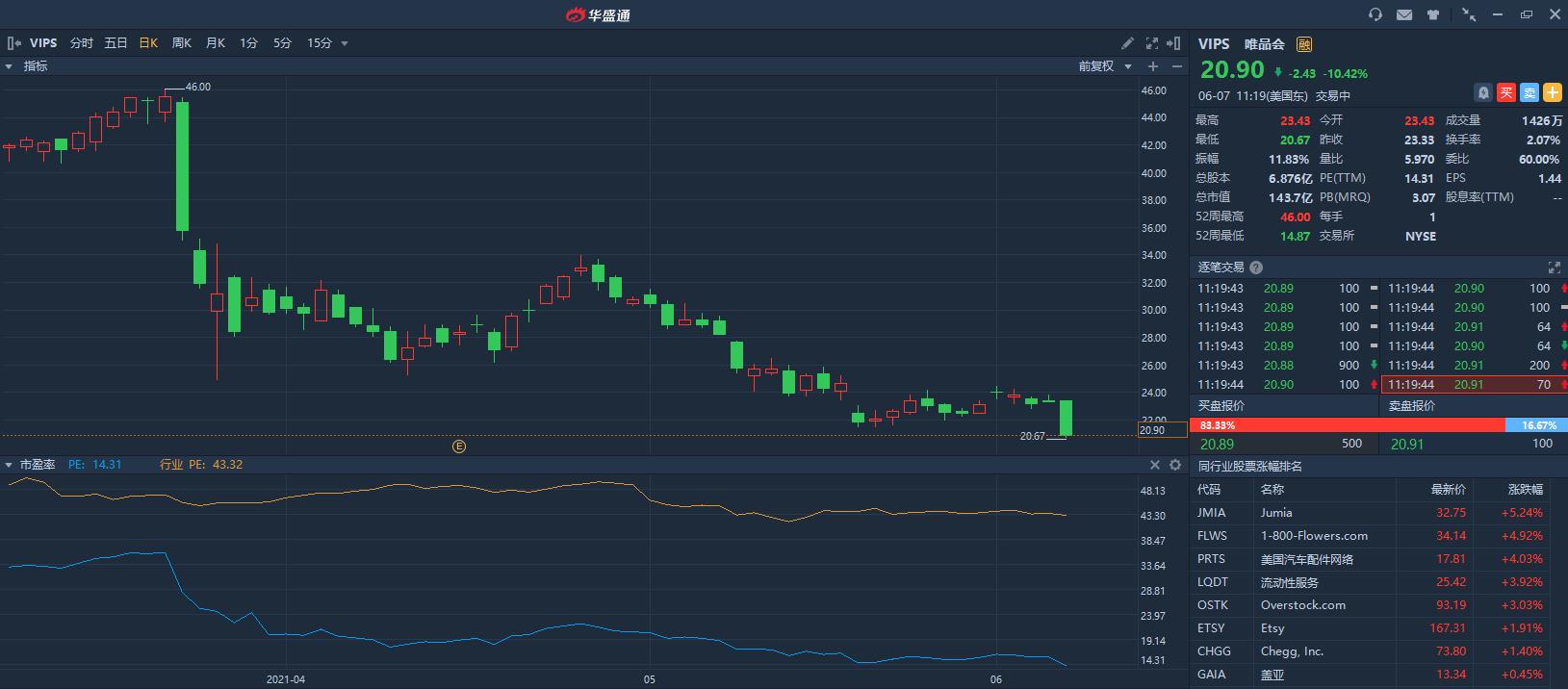 截至发稿,热门电商股唯品会(VIPS)跌超10%,拼多多(PDD)跌超3%,京东(JD)跌超2%。