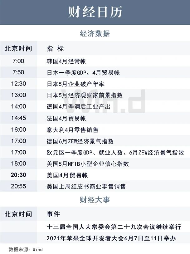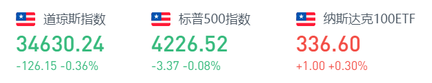 周一收盘(6月7日),道指下跌126.15点,或0.36%,报34630.24点;纳指涨67.23点,或0.49%,报13881.72点;标普500指数跌3.37点,或0.08%,报4226.52点。