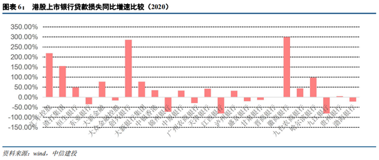 具体来看,2020年不良贷款拨备覆盖率最高的为贵州银行,同比提高9.41个百分点至334.36%,同时不良率为港股上市的内地银行中最低,在港股内银中资产质量最好。其次拨备覆盖率超过200%的为两家香港银行,分别为恒生银行及中银香港。国内银行中拨备覆盖率降幅超过100个百分点的有两家银行,分别是泸州银行及徽商银行。国内银行中拨备覆盖率最低的为盛京银行,仅114.05%,同比下降46.85个百分点。