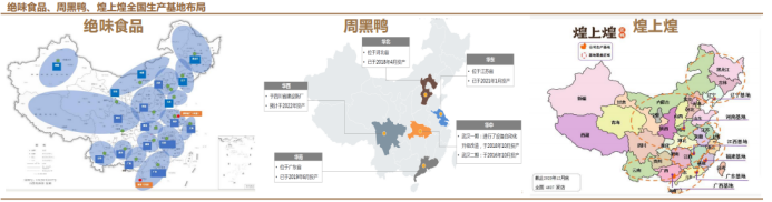 然而,相对于前两家,周黑鸭产能呈现区域性分布的特征,在全国仅有4个已投入运营的生产基地,分别在华北(河北)、华中(湖北)、华南(广东)和华东(江苏)地区各建有1个,另外华西(四川)还有1个生产基地正在规划中,预计于2022年投产。