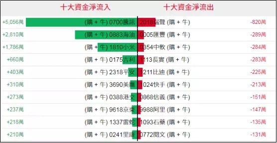 好仓(认购证及牛证)方面,周一腾讯、中海油、小米相关好仓单日分别录得约5056万、2810万、1786万港元资金净流入;瑞声科技相关好仓单日录得约820万港元资金净流出。