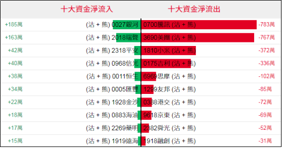 淡仓(认沽证及熊证)方面,周一个股相关淡仓净流入资金规模较小,腾讯、美团相关淡仓单日录得超700万港元资金净流出。