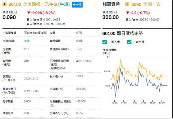 2、看错方向:美团瑞通一乙牛(66100.HK),周一下跌6.2%。