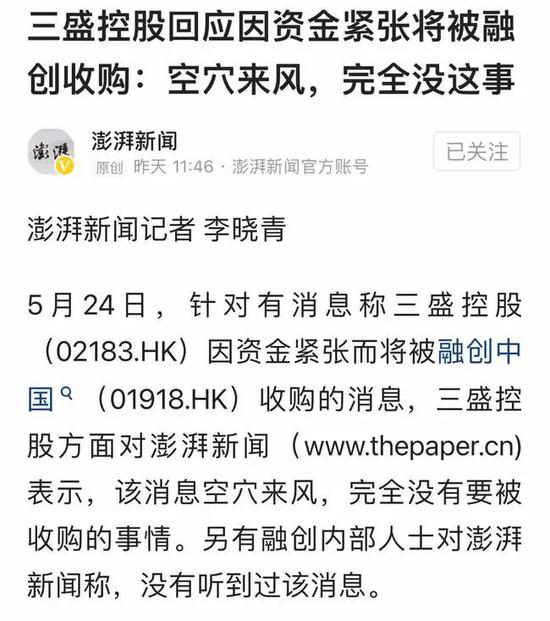 叫停IPO原因,或与地产圈资金链紧张有关,早前澎湃新闻曾发布三盛控股(02183.HK)因资金紧张而将被融创中国(01918.HK)收购的消息,当时三盛控股澄清指消息空穴来风,完全没有要被收购的事情。