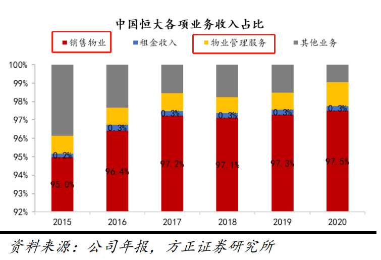 除地产外,“二当家”恒大物业在今年年底合约面积和在管面积有望分别达到8亿和6亿平,将继续为集团贡献稳定的收入。2020年,恒大物业实现了收入105.2亿元,同比增43.3%,处于行业龙头地位。