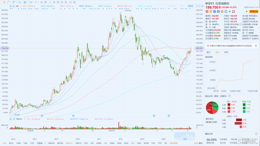 回望5月份至今的行情,比亚迪较年内低点,已经反弹超过40%。而在这之前,比亚迪股价较年初一度接近腰斩。