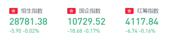 周二(6月8日)收盘,恒指跌0.02%,报28781.38点,国企指数跌0.17%,报10729.52点;红筹指数跌0.16%,报4117.84点。