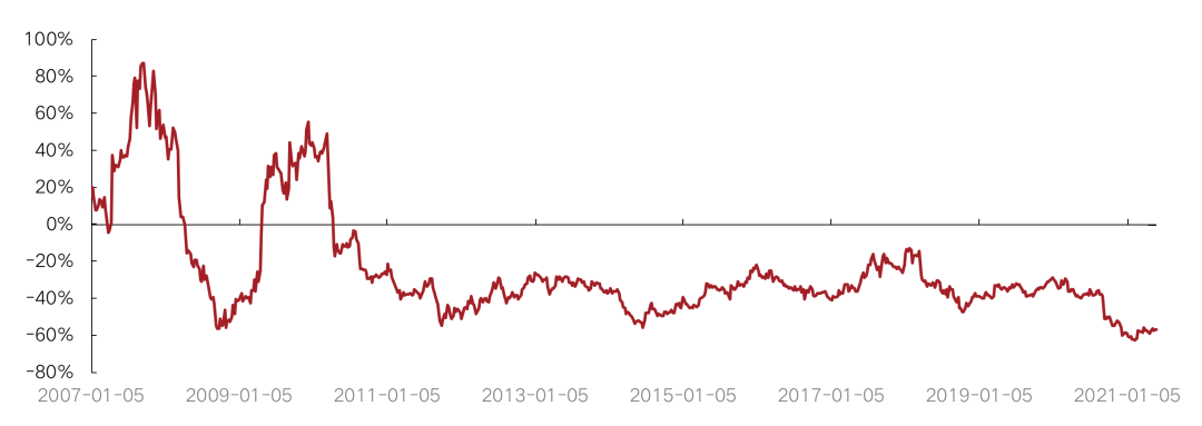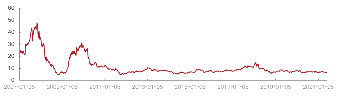 备注:1)恒生中国内地地产指数的推出主要是为了反映前10只市值最大、流通性最高,在香港上市但主要营业收入来自中国内地的房地产股票表现。当前成分股共10只,分别为:中国金茂、中国海外发展、世茂集团、龙湖集团、华润置地、龙光集团、碧桂园、中国恒大、碧桂园服务、融创中国