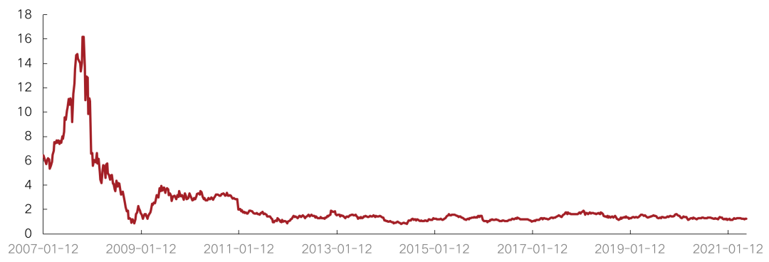 从估值角度看,2021年5月克而瑞内房股领先指数估值平稳,指数相对恒指PE略有回升。