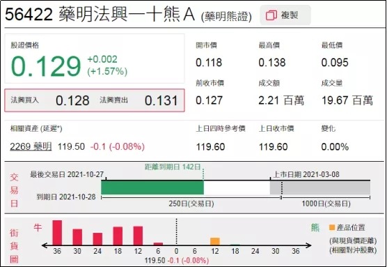 1、强势轮证:药明法兴一十熊(56422.HK),周二上涨1.57%;