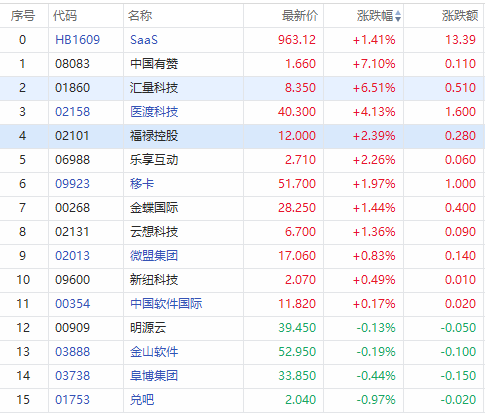 华盛资讯6月8日消息,SaaS概念股走势分化,中国有赞持续反弹超7%,前日曾创下11个月新低;汇量科技涨超6%;医渡科技涨超4%;福禄控股、乐享互动涨超2%;兑吧、明源云、金山软件、阜博集团盘中轻微下跌。
