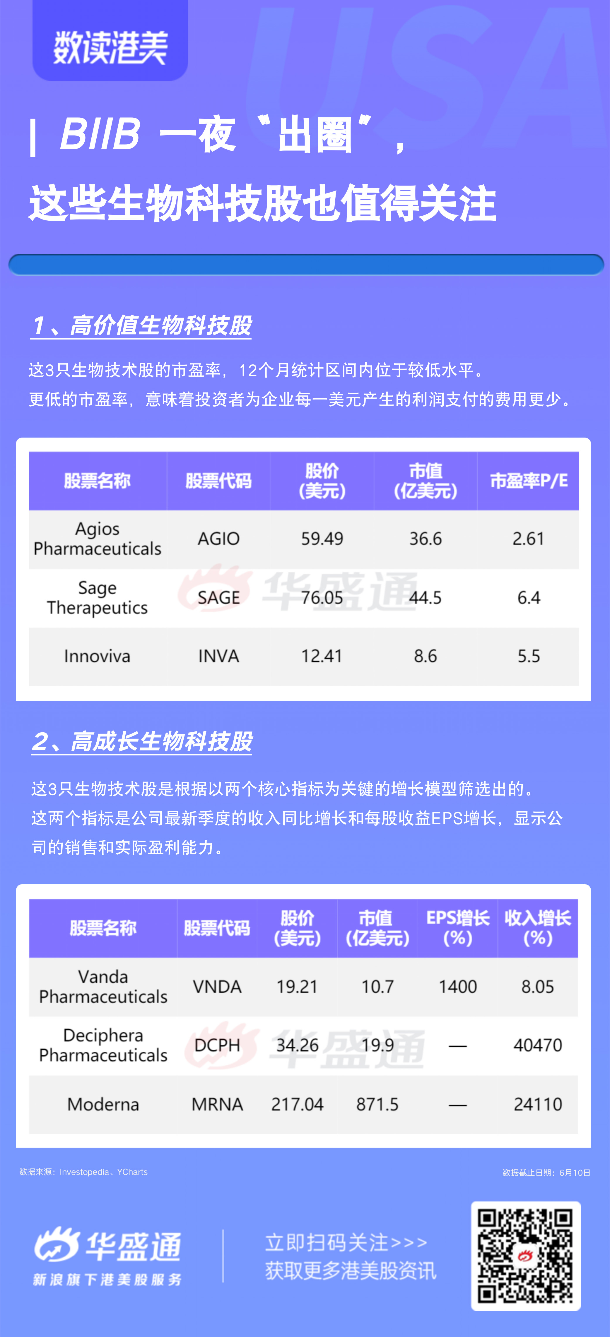在生物科技相关概念股中,除了BIIB,Investopedia还总结了这些高价值、高成长的个股,这些个股都有哪些特点呢?一图速览: